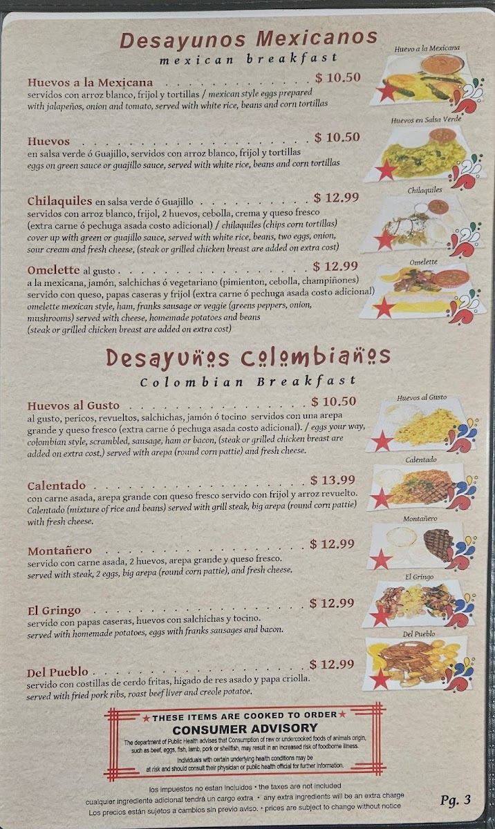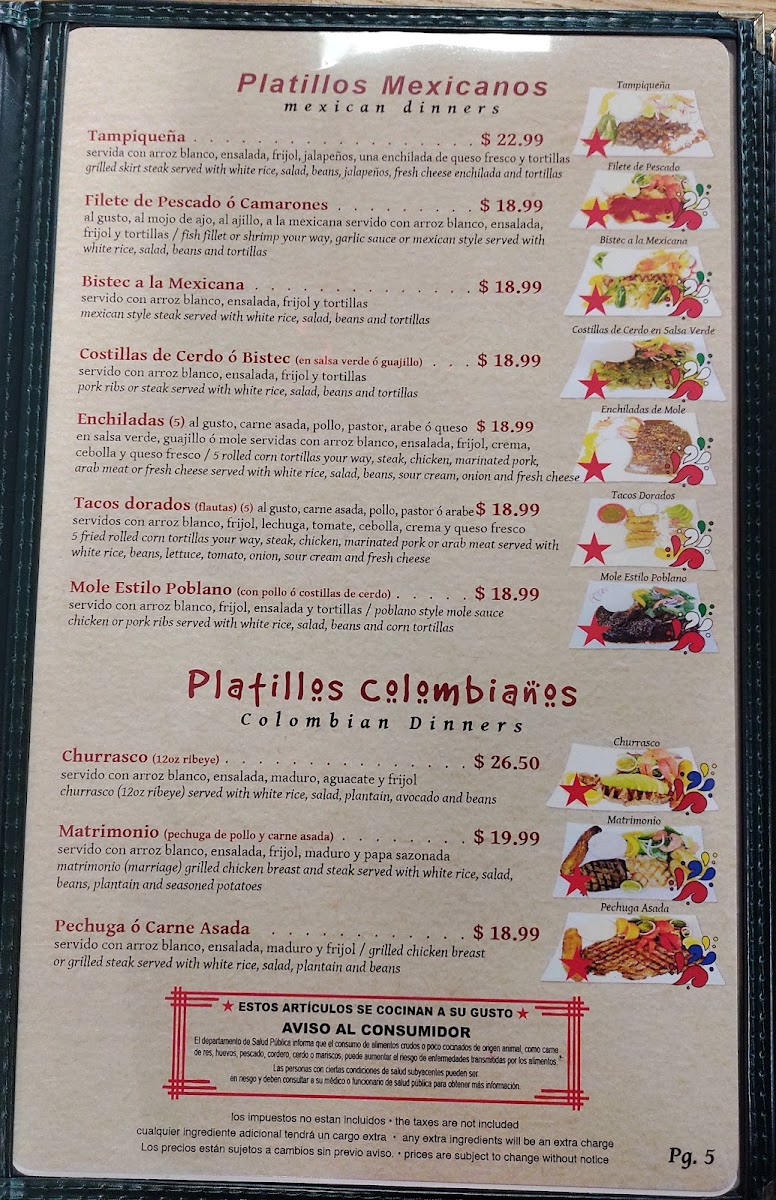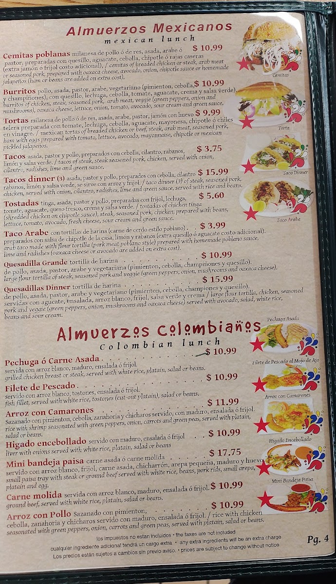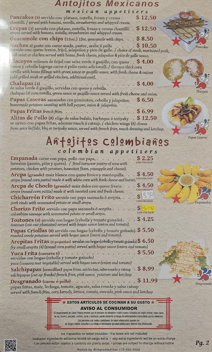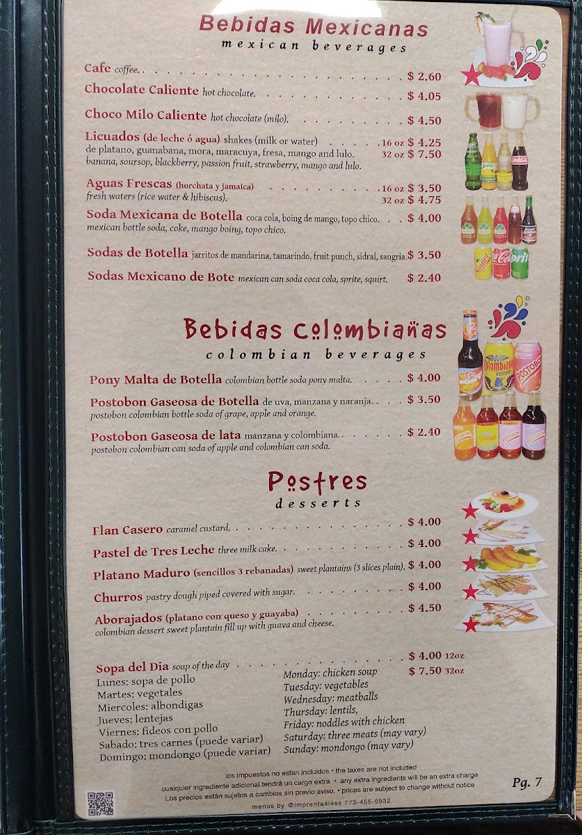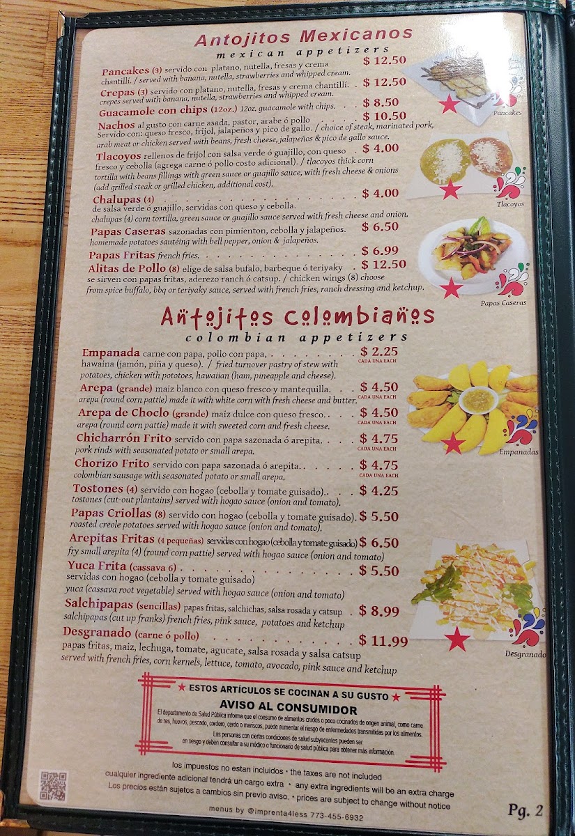 The menu at Mexicolombia offers a comforting blend of traditional Colombian and Mexican dishes, presenting a variety of casual yet satisfying options. It feels like a welcoming spot where you can enjoy hearty meals any time of the day—from fulfilling breakfasts like the classic caldo and calentado to flavorful lunch and dinner plates that bring together rich, familiar flavors.